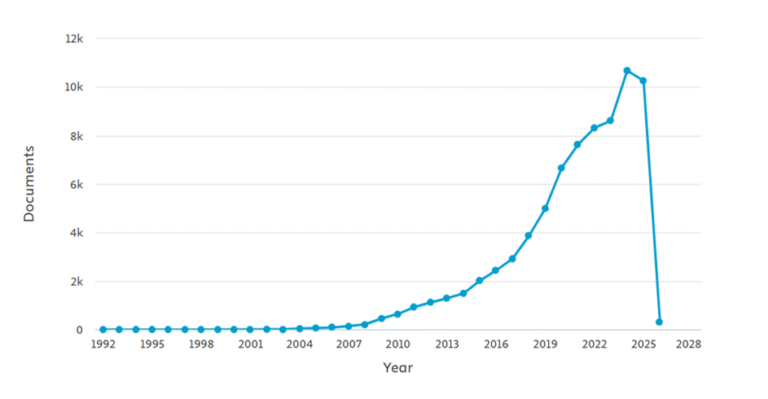 Figure 2. Growth trend of scientific publications related to MOFs over the years. Scopus: KEY (metal AND organic AND frameworks).